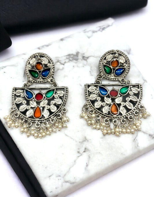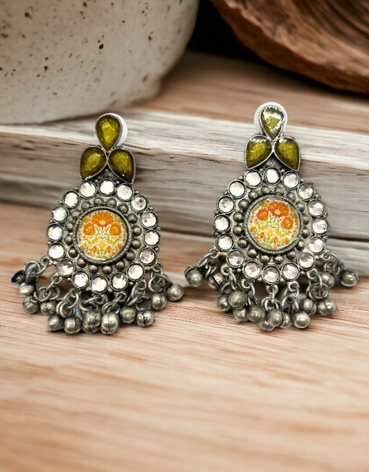 VIVAZS Silver Oxidised Earrings - Orange/ Yellow