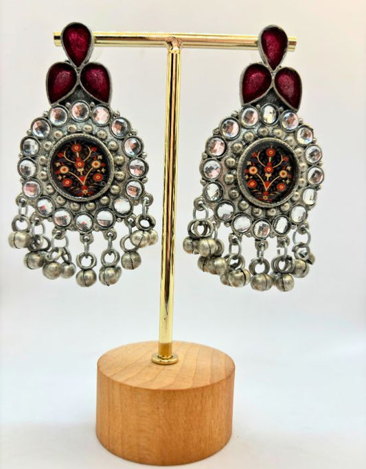 VIVAZS Silver Oxidised Earrings- Maroon