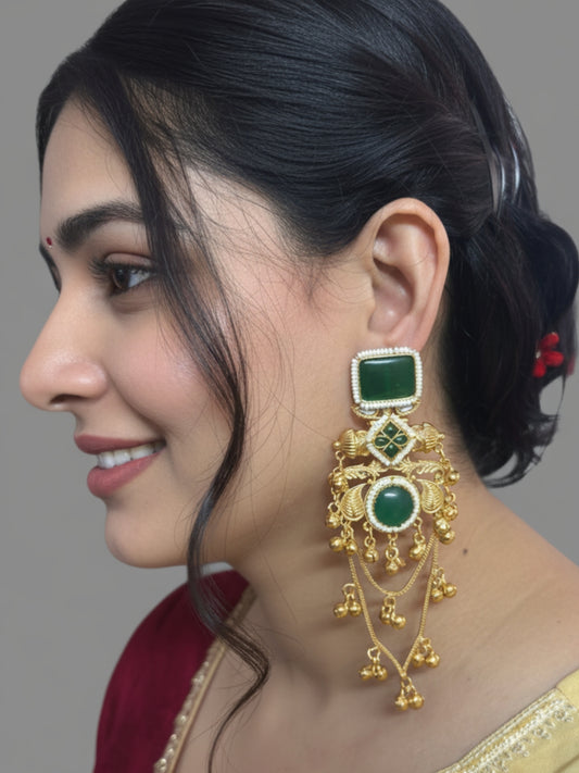 VIVAZS Kashmiri Gold Plated Drop Earrings Green