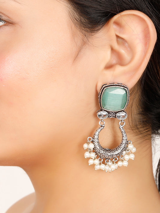 VIVAZS Silver-Plated Contemporary Chandbalis Earrings