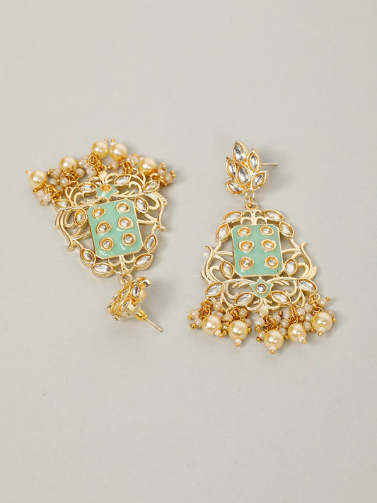 VIVAZS Gold-Plated Stones Studded & Beaded Chandbalis