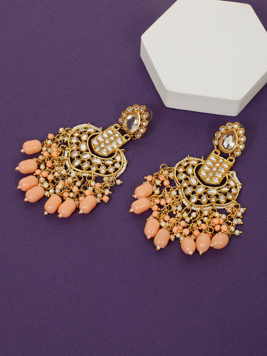 VIVAZS Kundan Pearl Chandbali (Peach)