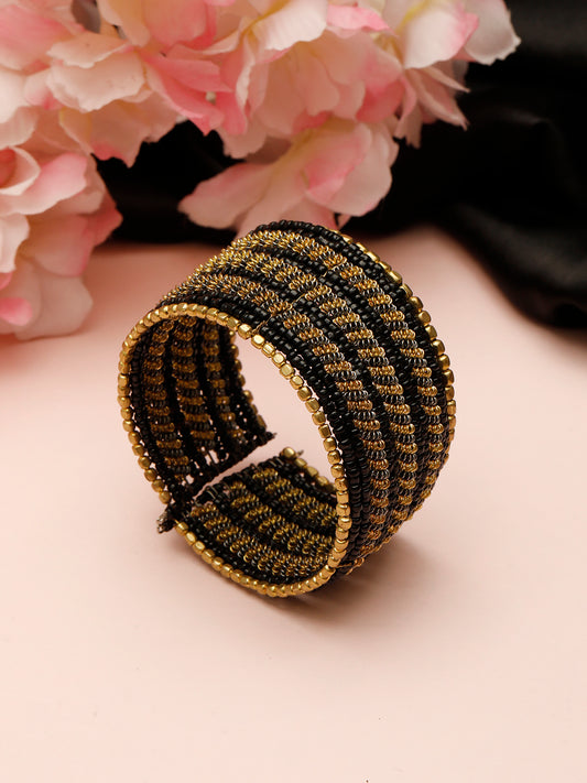 VIVAZS Gold-Plated Beaded Afghan Layered Necklace with Bracelet (Black)