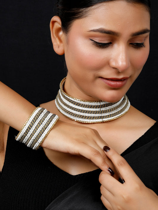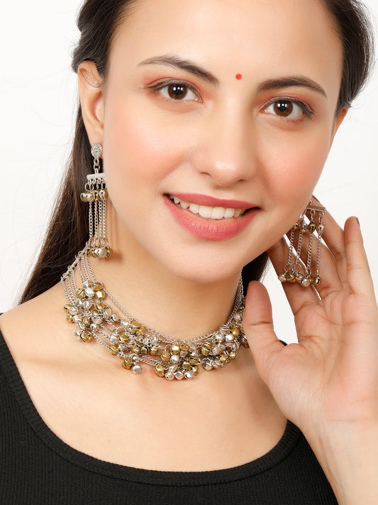 VIVAZS Golden Choker Necklace Jewellery Set(Silver and Golden)