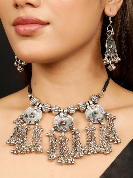 VIVAZS Vintage Oxidized Fashion Necklace Earring Jewelry Set(Silver)