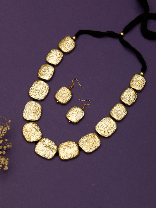 VIVAZS Gold Plated Oxidised Choker Necklace and Earrings(Golden)