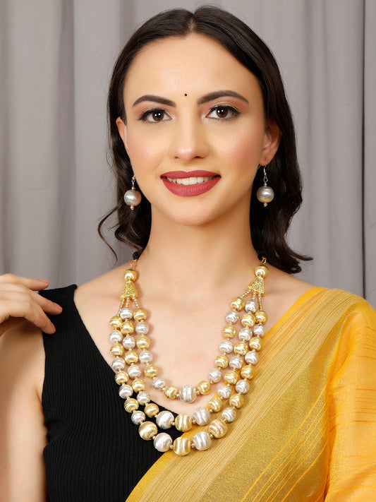 VIVAZS Vintage Layered Oxidized Fashion Necklace Earring Jewelry Set(Golden and Silver)