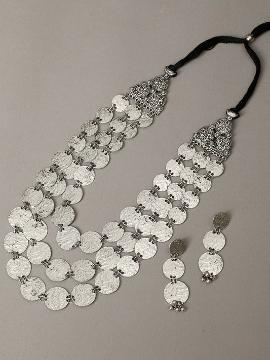 VIVAZS Oxidized Brass-Plated Silver-Toned Handcrafted Jewellery Set