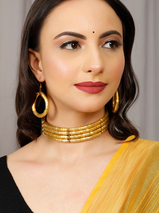 VIVAZS Spiral Choker Necklace Set (Golden colour)