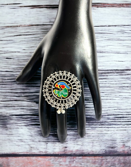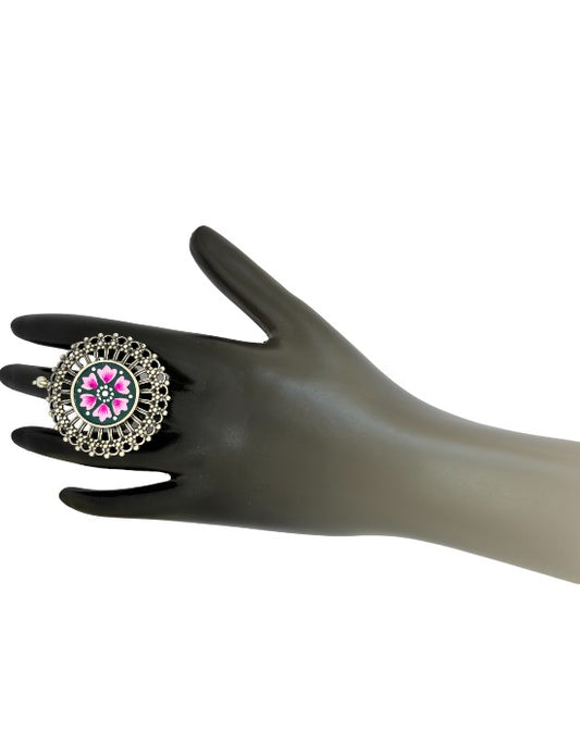 VIVAZS Oxidised Silver Ring (Green and Pink)