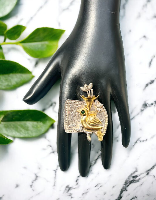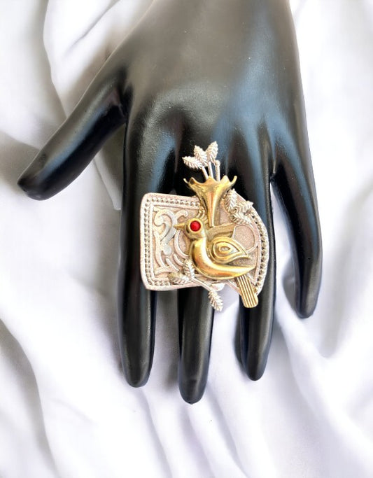 VIVAZS Silver Look Alike Dual Tone Bird Ring