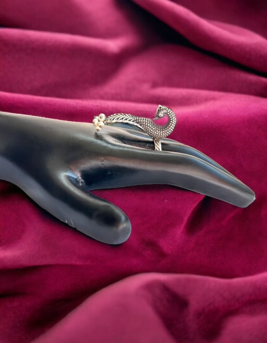 VIVAZS Silver Look alike Black Bird Oxidized Ring