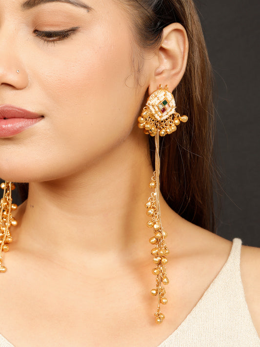 VIVAZS Handmade Gold Long Indian Shoulder Duster Earrings | Contemporary
