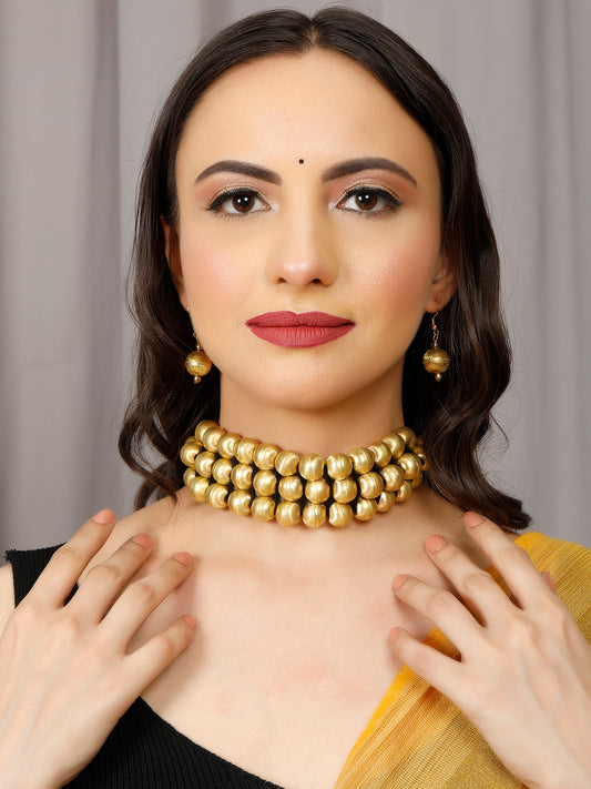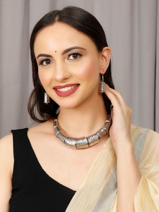 VIVAZS Silver Tribal Choker Necklace Jewellery Set for Women