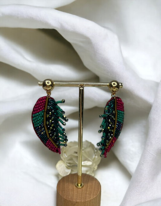 VIVAZS Leaf Quirky Earrings Fabric Drops & Danglers