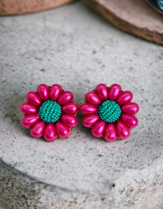 VIVAZS Daisy Stud Earrings ( Dark Pink)