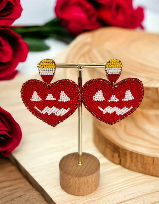 VIVAZS Handmade Love: Red Beaded Heart Earrings For Women