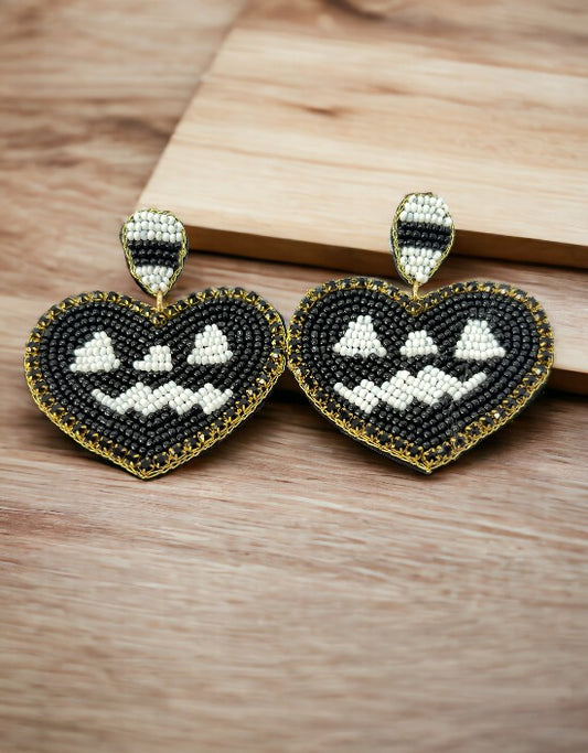 VIVAZS Handmade Love - Black Beaded Heart Earrings For Women and Girls
