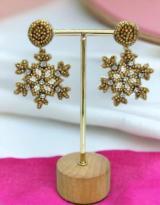 VIVAZS Fashionable Snowflake Earrings - Handcrafted Beaded Jewelry(Golden)