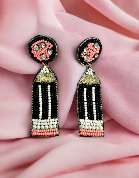 VIVAZS Black Pencil Embroidered Earrings For Girls & Women
