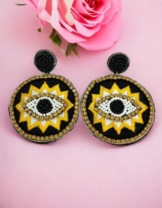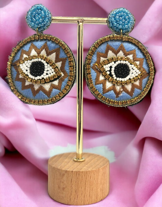 VIVAZS Navy Blue Evil Eye Handmade Earrings