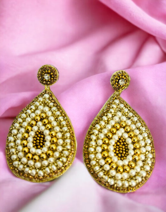 VIVAZS Golden Beaded Handmade Earrings For Women