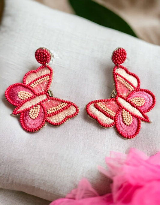 VIVAZS Beautiful Pink color Beaded Butterfly Earrings