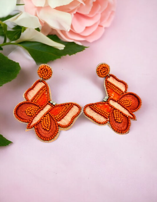 VIVAZS Beautiful Orange color Beaded Butterfly Earrings