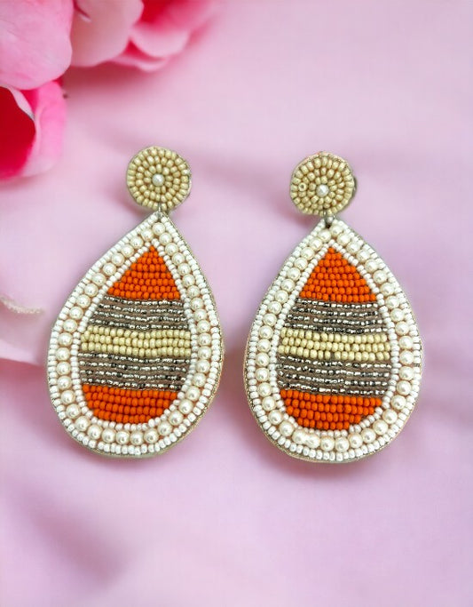 VIVAZS Handcrafted Beaded Earrings - Modern Dangle Earrings for Women (Orange)