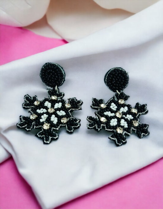 VIVAZS Fashionable Snowflake Earrings - Handcrafted Beaded Jewelry(Black)