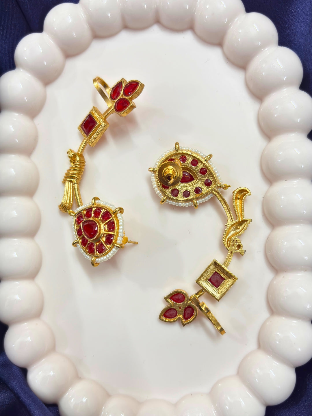 Pair this Golden Antique earcuffs with a saree and a matching blouse or experiment with contrasting colors for a modern twist.