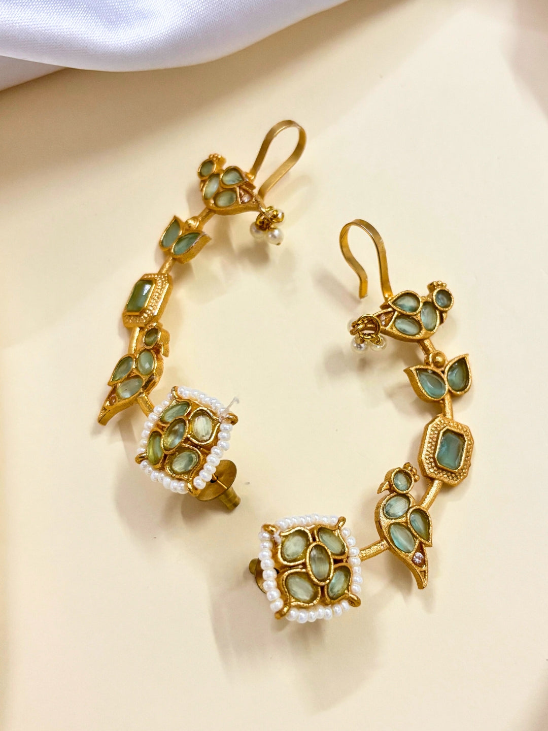 VIVAZS Gold Plated Contemporary Ear Cuff Earrings (Mint Green)