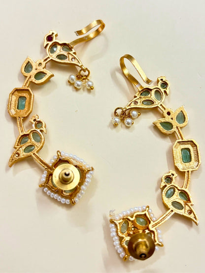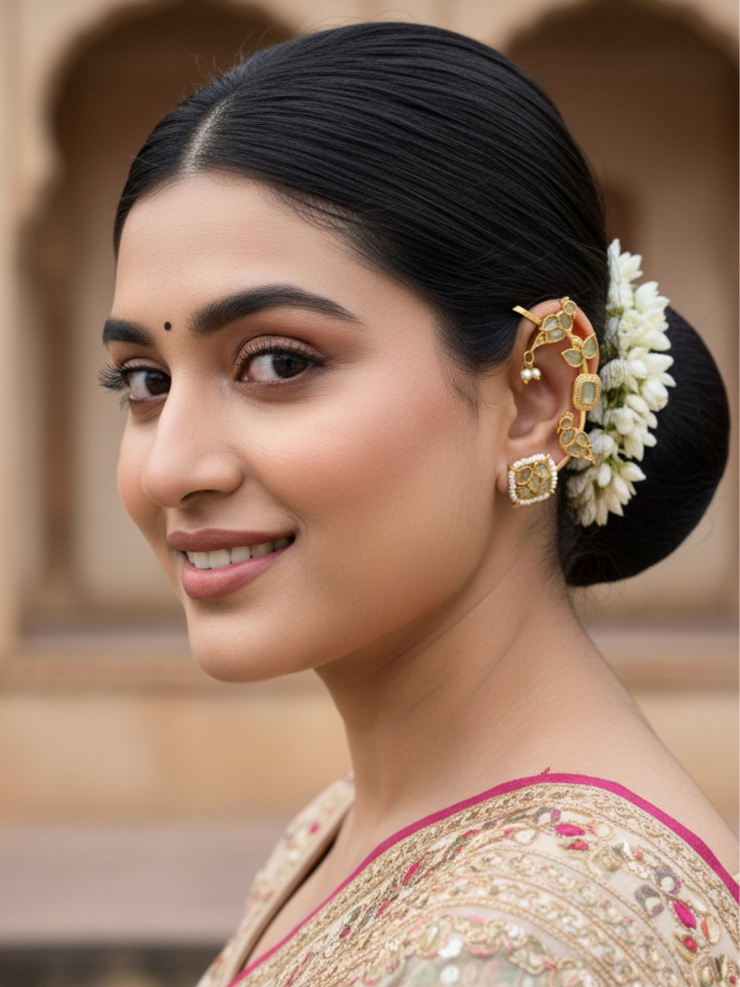 Pair this Golden Antique earcuffs with a saree and a matching blouse or experiment with contrasting colors for a modern twist.