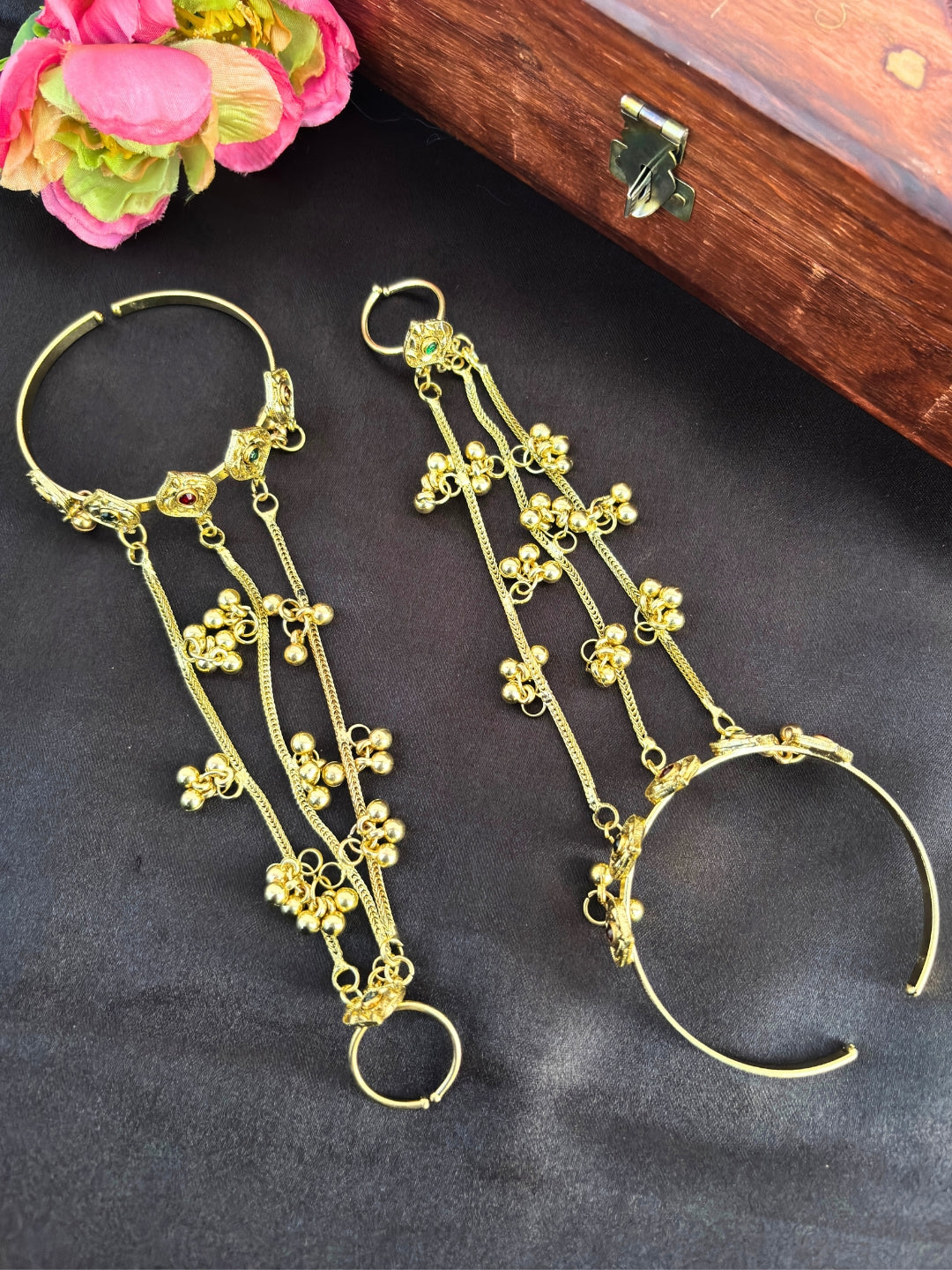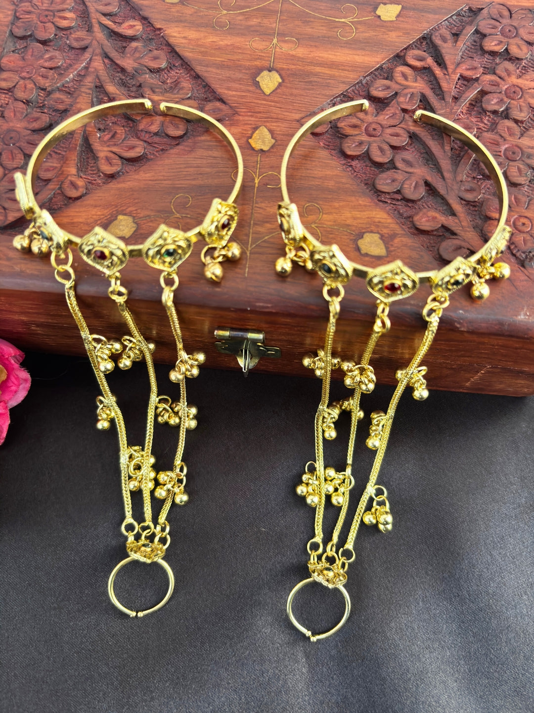 VIVAZS Gold-Plated Kundan Ring Bracelet With Hathphool