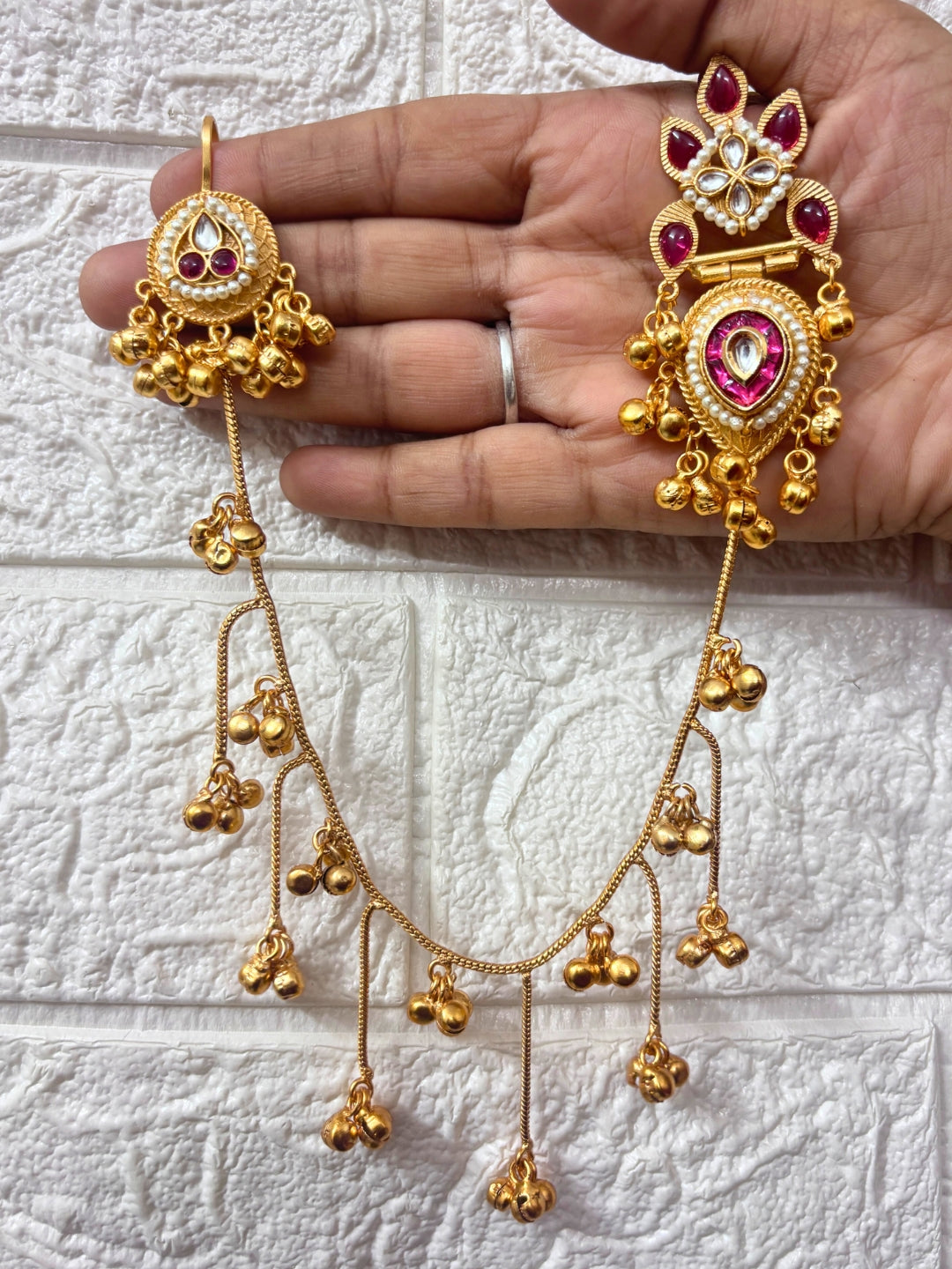 VIVAZS Gold Plated Kundan Studded Earchain KanChain Earrings