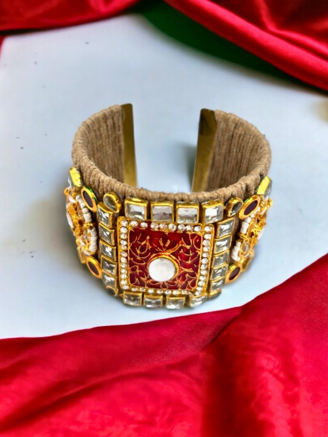 VIVAZS Golden and Red Kundan Adjustable Jute Bracelet