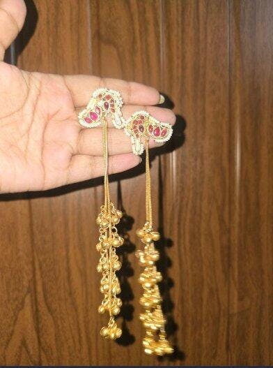 Pair this Kasmiri Drop Earrings with a saree and a matching blouse or experiment with contrasting colors for a modern twist.