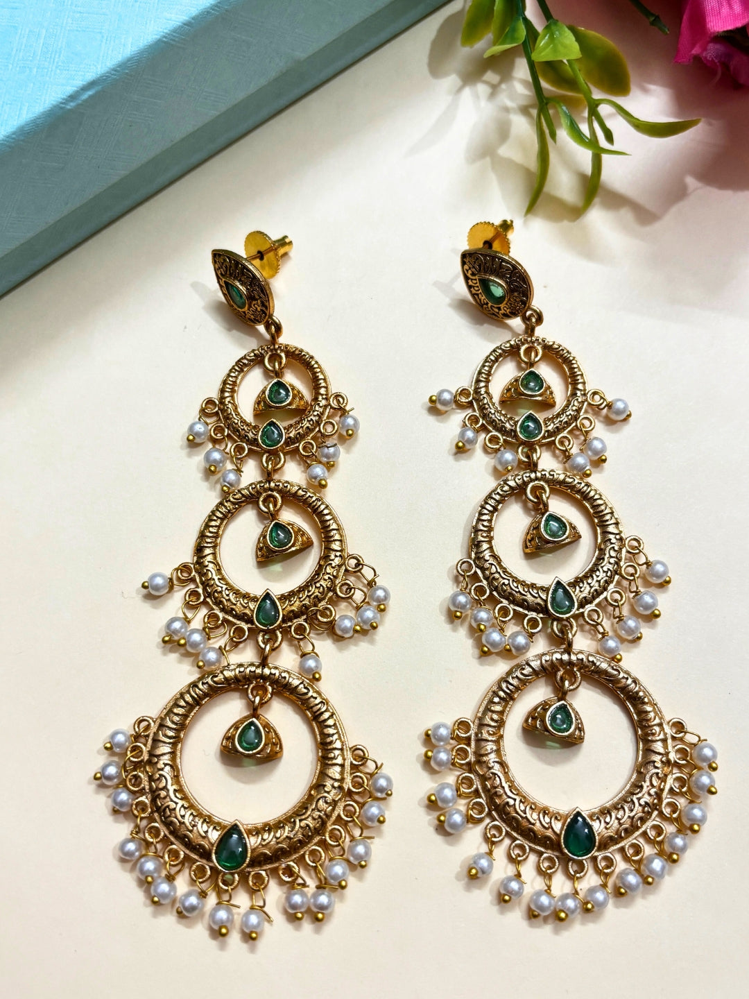 Pair this Kasmiri Drop Earrings with a saree and a matching blouse or experiment with contrasting colors for a modern twist.