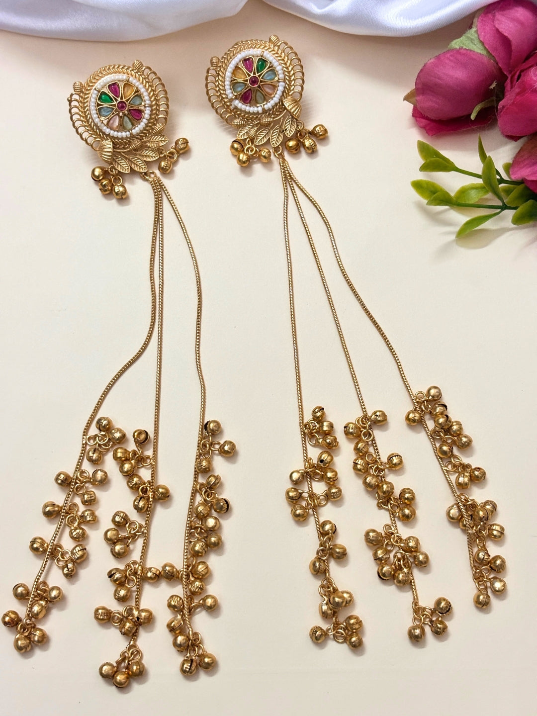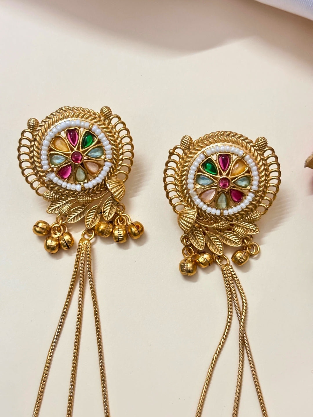 VIVAZS Kashmiri Long Drop Earrings (Navratan color)