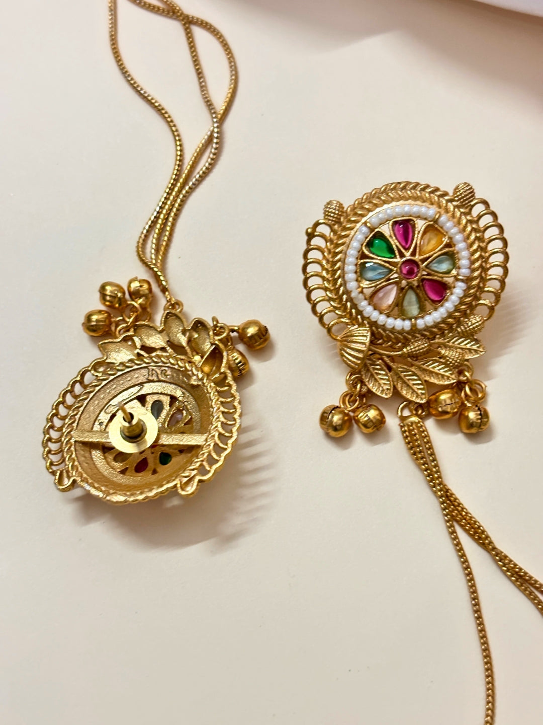 Pair this Kasmiri Drop Earrings with a saree and a matching blouse or experiment with contrasting colors for a modern twist.