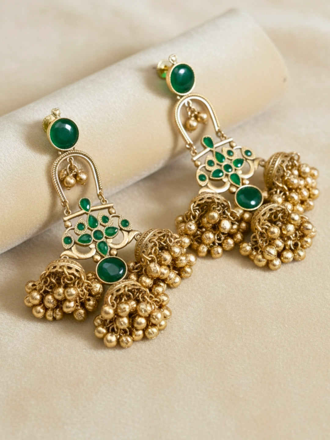 Pair this Kasmiri Drop Earrings with a saree and a matching blouse or experiment with contrasting colors for a modern twist.