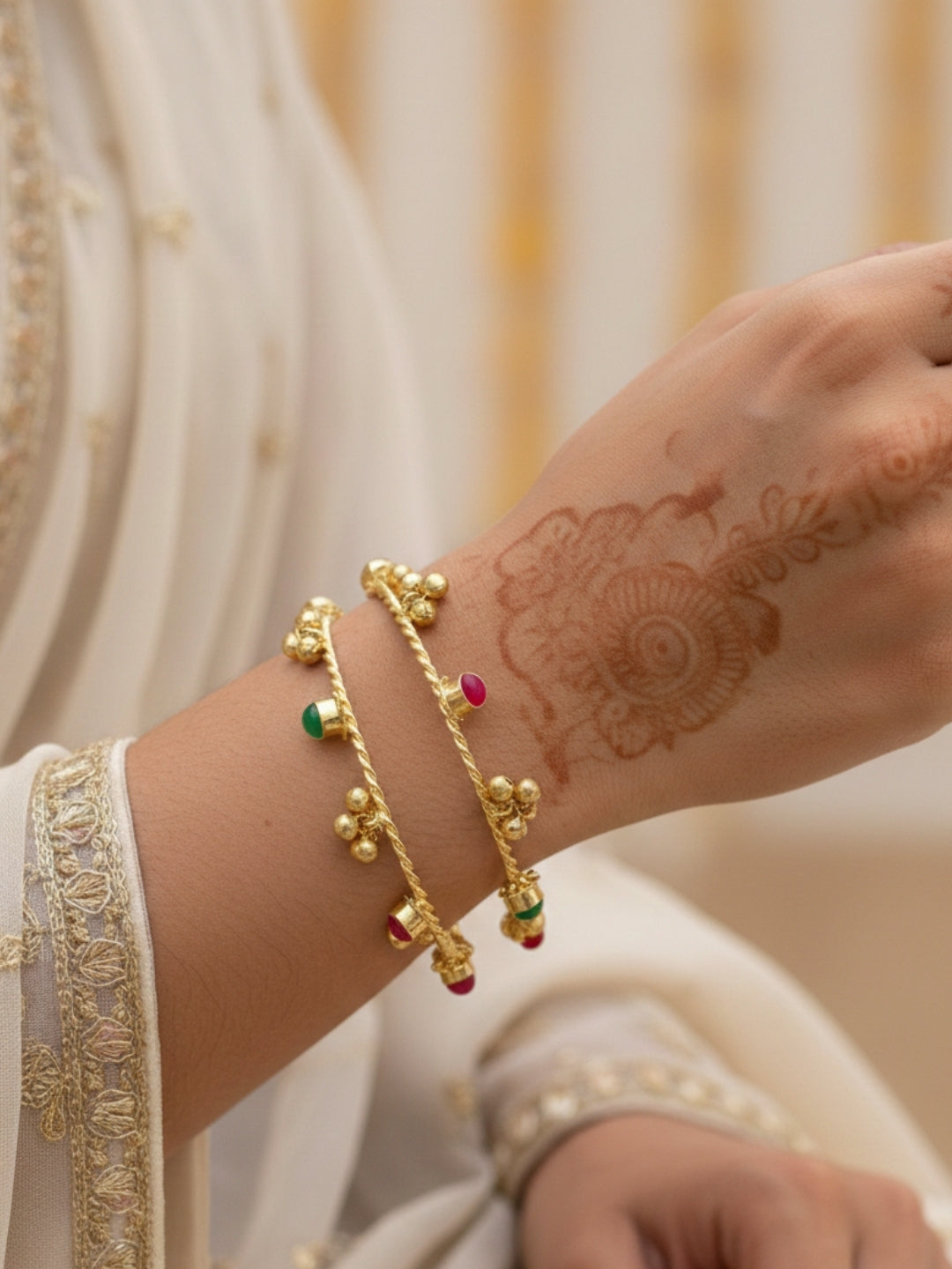 VIVAZS Set of 2 18K Gold Toned Adjustable Gungaroo Traditional Bangles(Red and Green)
