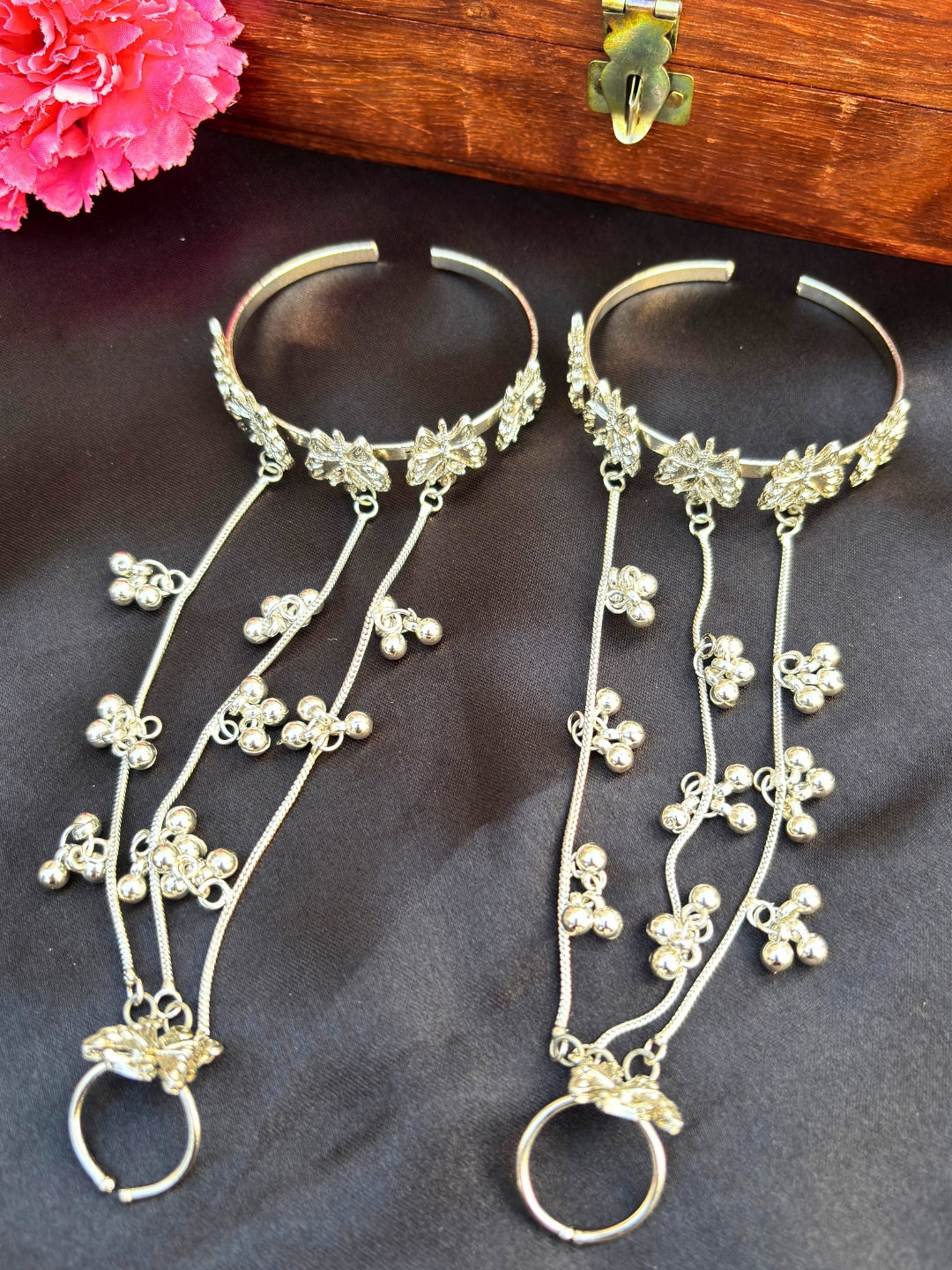 VIVAZS Silver-Plated Butterfly Ring Bracelet With Hathphool